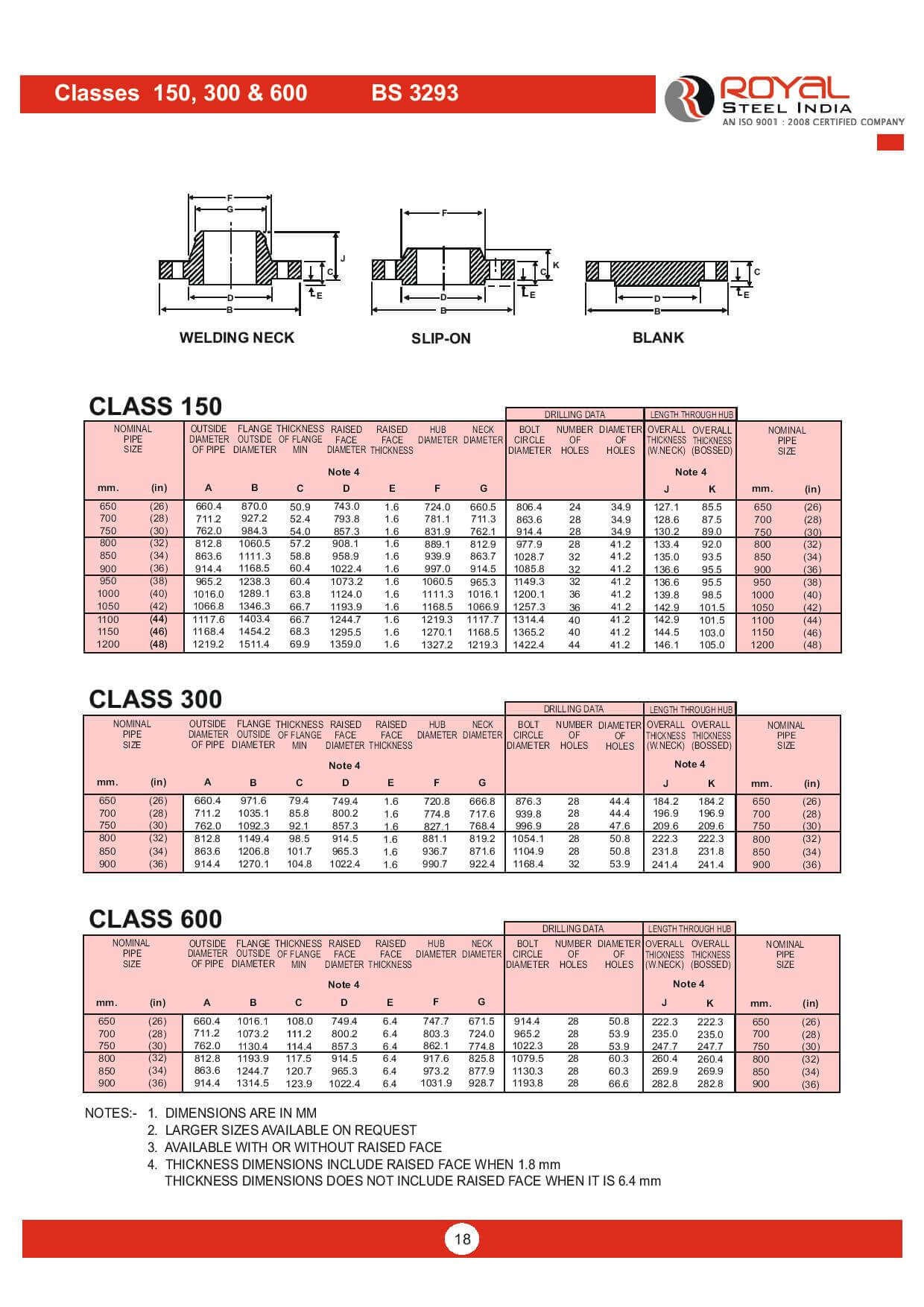 Classes 150, 300 & 600 BS 3293